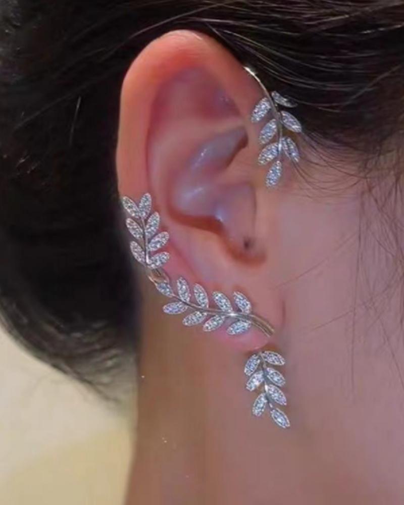 1PCS Leaf Shape Rhinestone Decor Earring, Style2