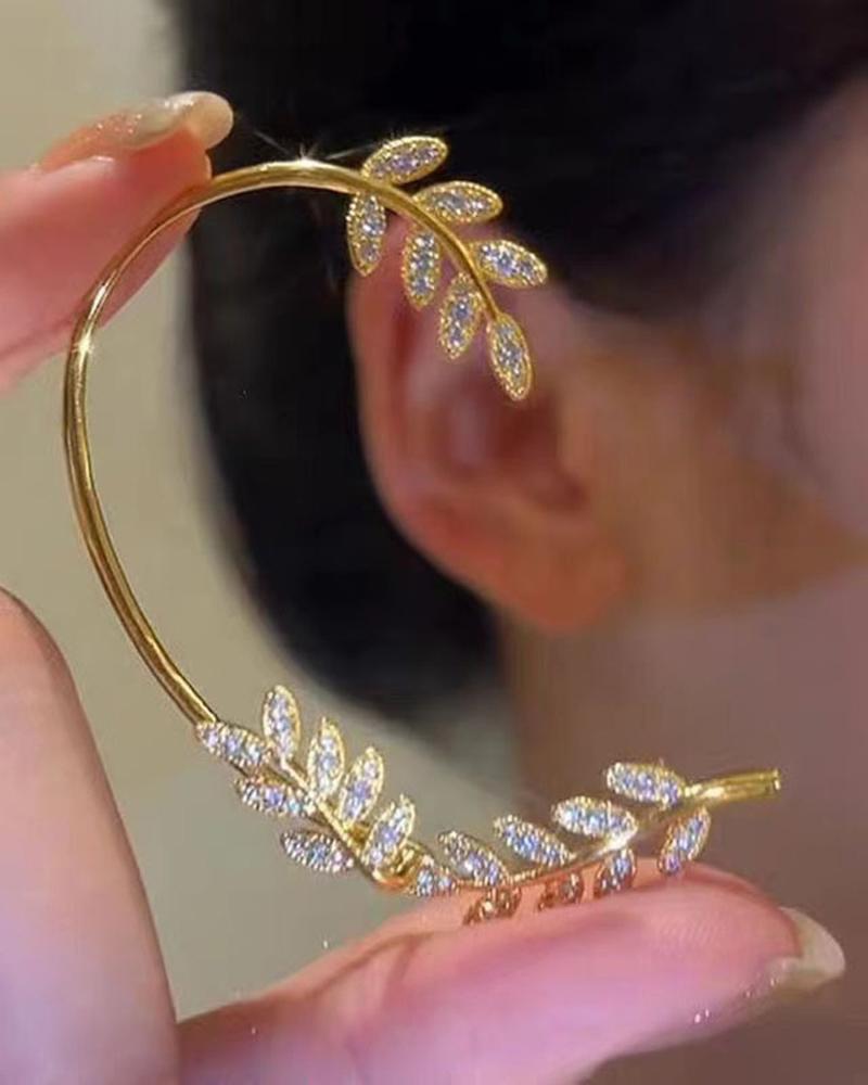 1PCS Leaf Shape Rhinestone Decor Earring, Style4