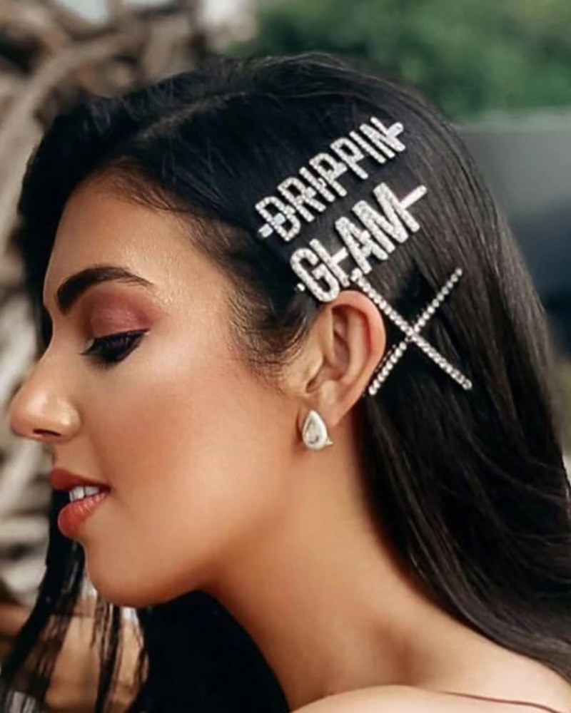 1PCS Letter Pattern Rhinestone Hair Clip, Style1