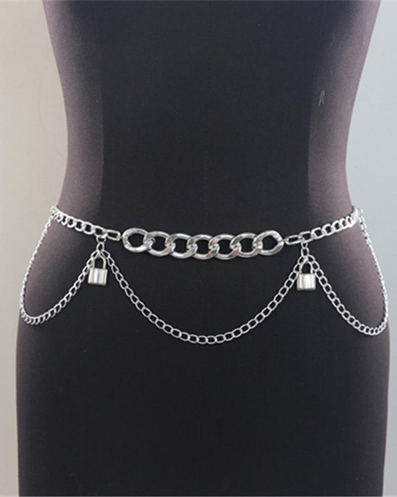 1PCS Lock Decor Hip-Hop Punk Waist Chain, Silver