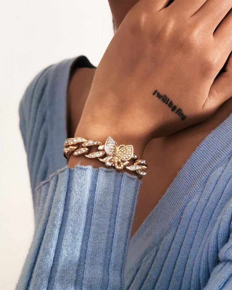 1PCS Rhinestone Butterfly Decor Chain Design Bracelet, Gold