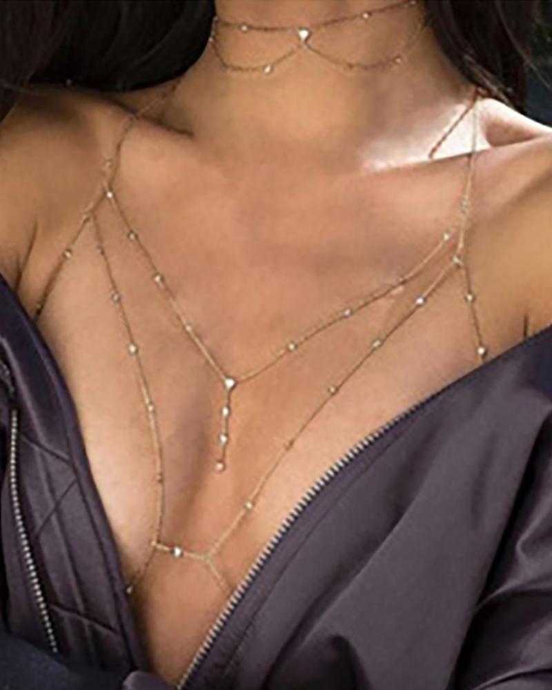 1PCS Rhinestone Decor Layered Body Chain, Gold