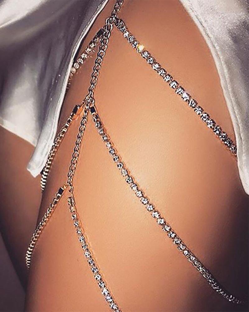 1PCS Rhinestone Decor Layered Thigh Chain, Silver