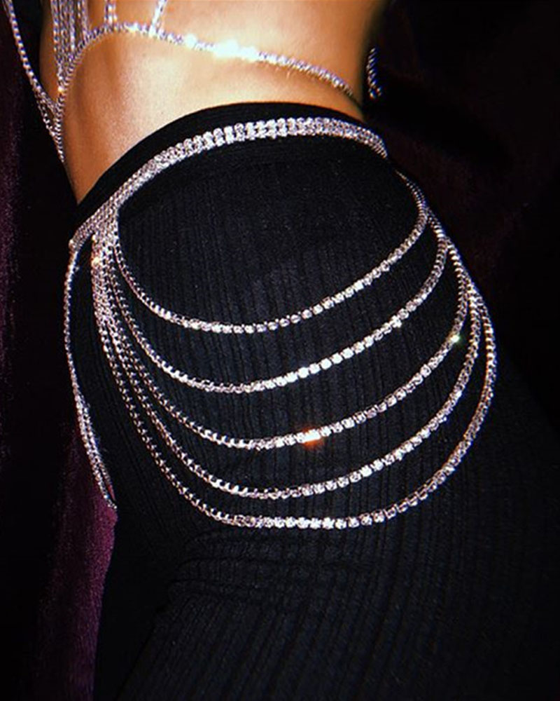 1PCS Rhinestone Decor Layered Waist Chain, Silver