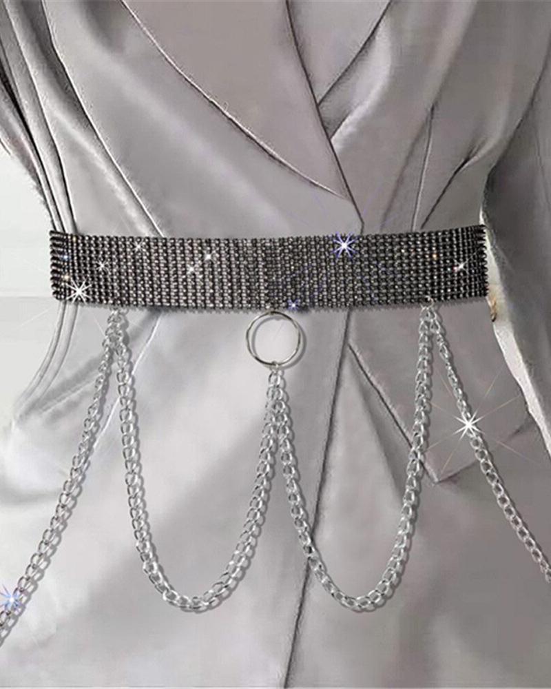 1PCS Rhinestone Decor O-Ring Waist Chain, Silver
