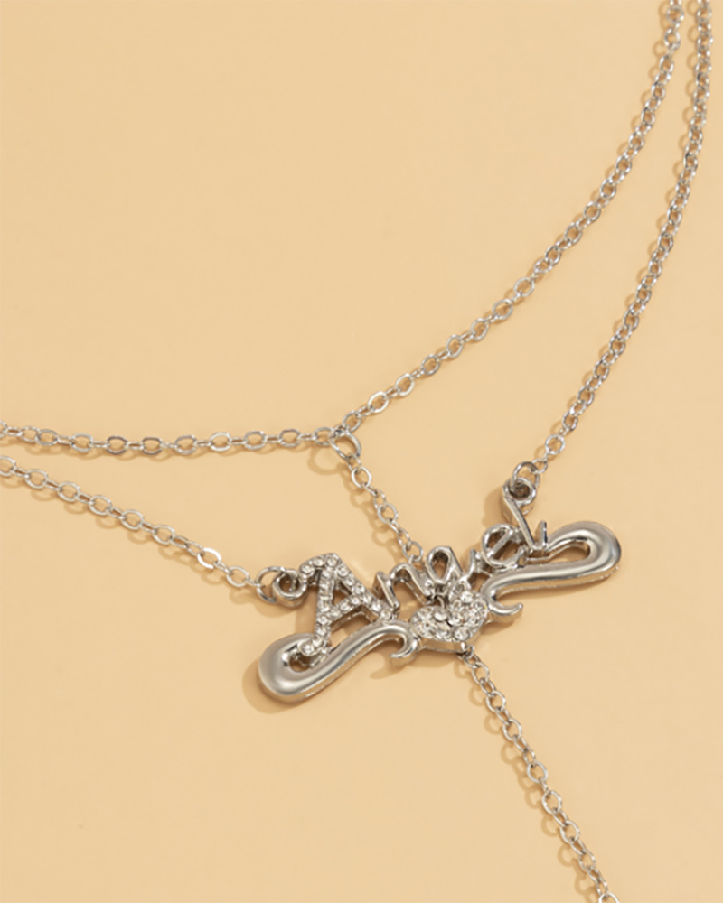 1PCS Rhinestone Letter Pattern Body Chain, Silver