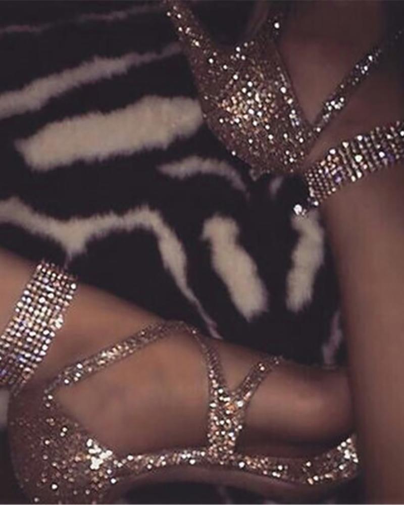 1PCS Wide Band Rhinestone Chain Anklet, Gold