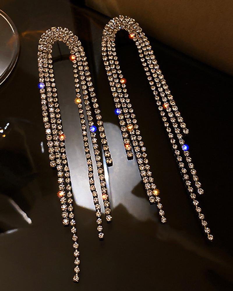 1Pair Allover Rhinestone Tassel Dangle Earrings, Gold
