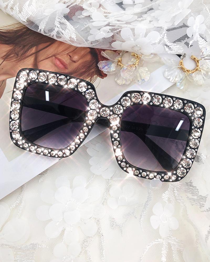 1Pair Big Square Frame Rhinestone Sunglasses, Gray