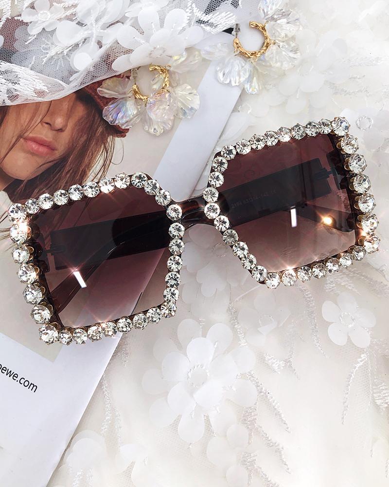 1Pair Big Square Frame Rhinestone Sunglasses, Tan