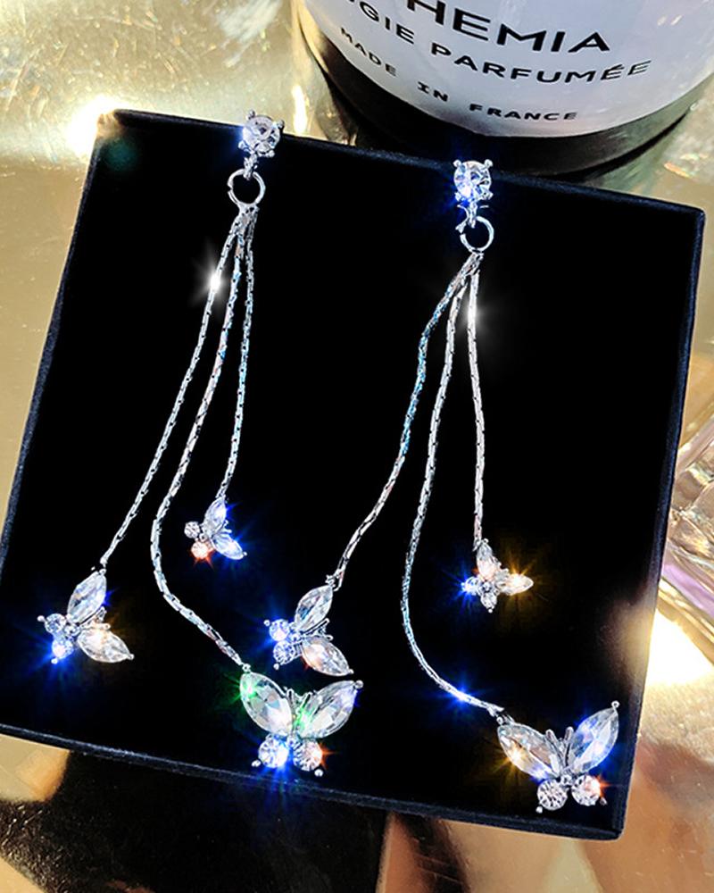 1Pair Butterfly Pattern Rhinestone Decor Drop Earrings, Silver