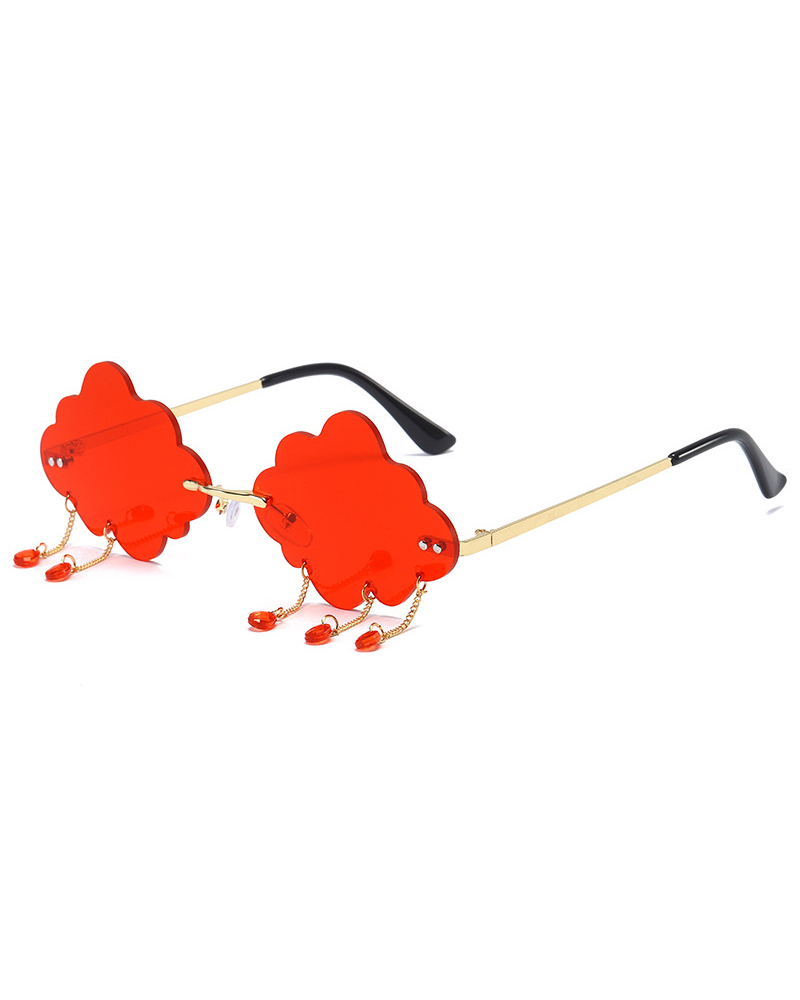 1Pair Chain Decor Cloud Shaped Rimless Fashion Sunglasses, Red