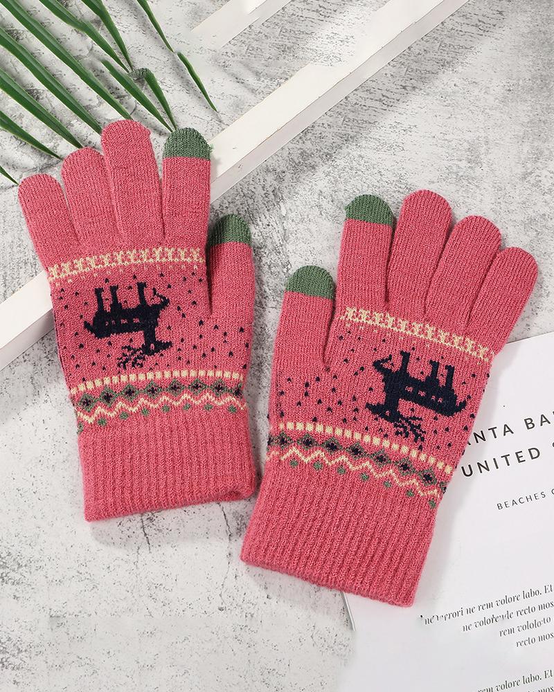1Pair Christmas Elk Pattern Knit Gloves, Style5