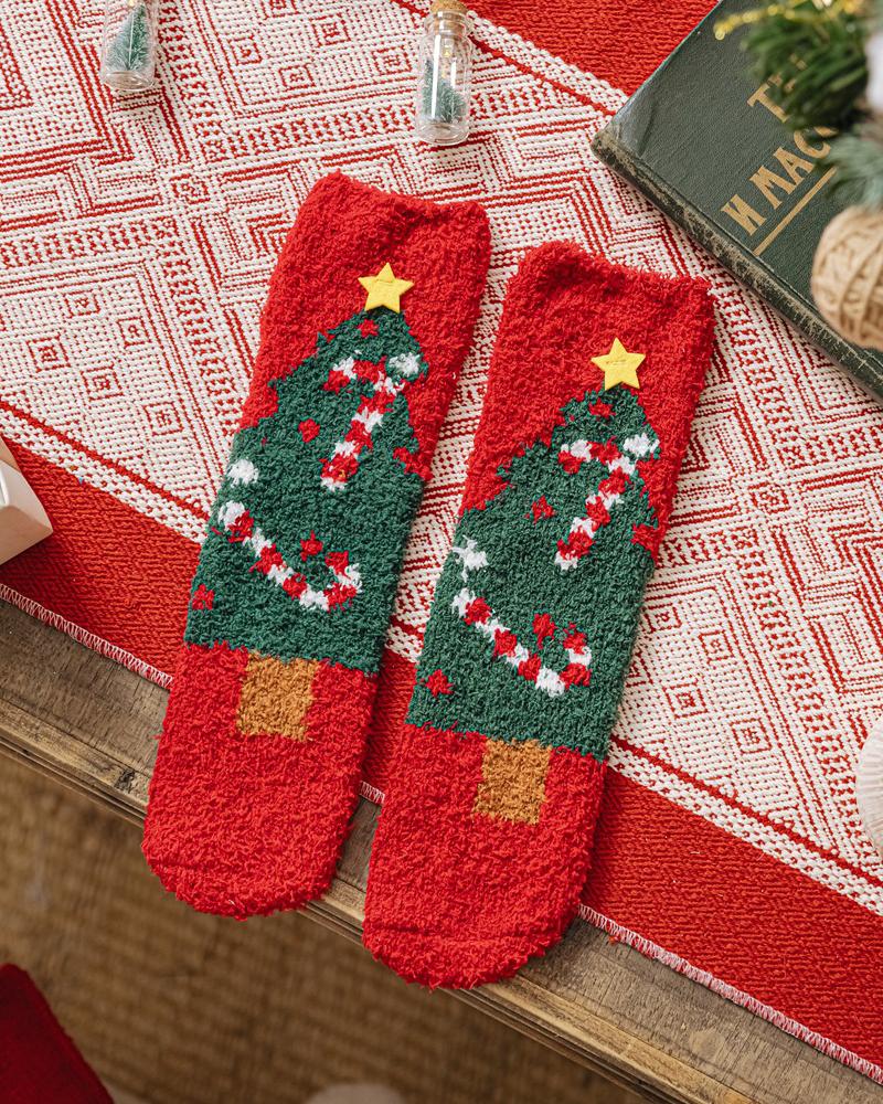 1Pair Christmas Gift Fuzzy Socks With Clear Box, Style3