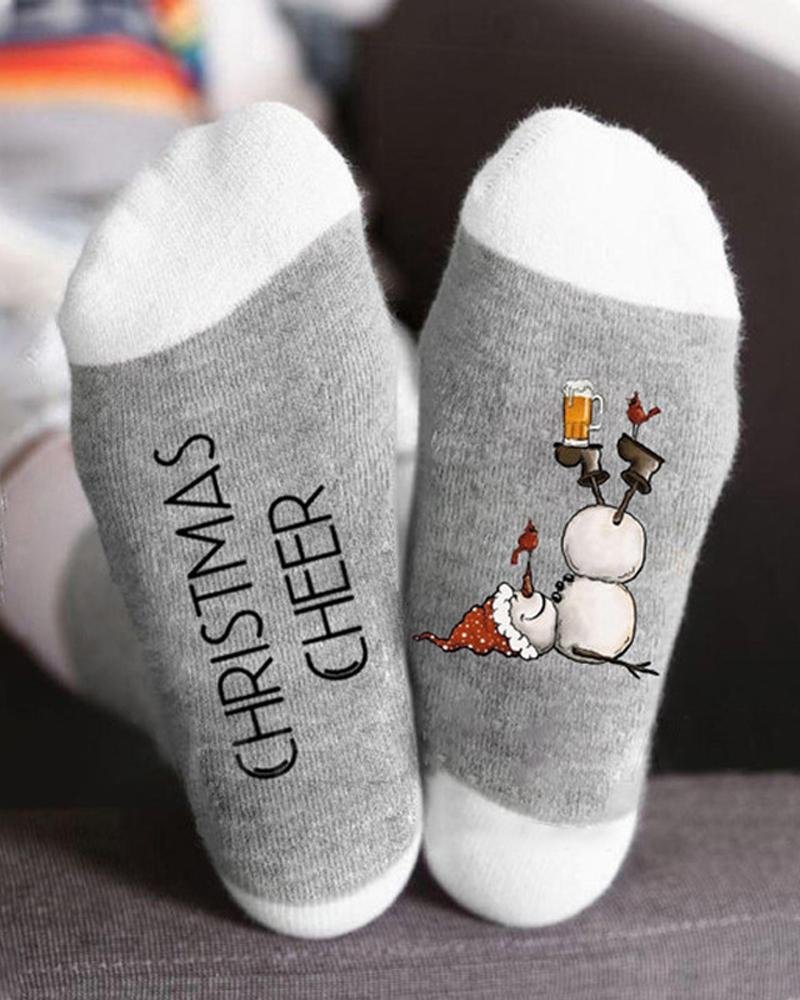 1Pair Christmas Snowman Letter Print Socks, Style1