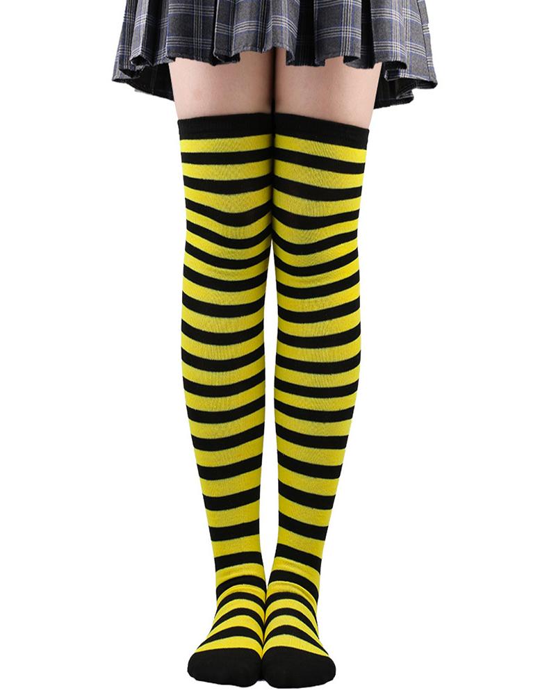 1Pair Christmas Striped Cosplay Party Socks, Yellow