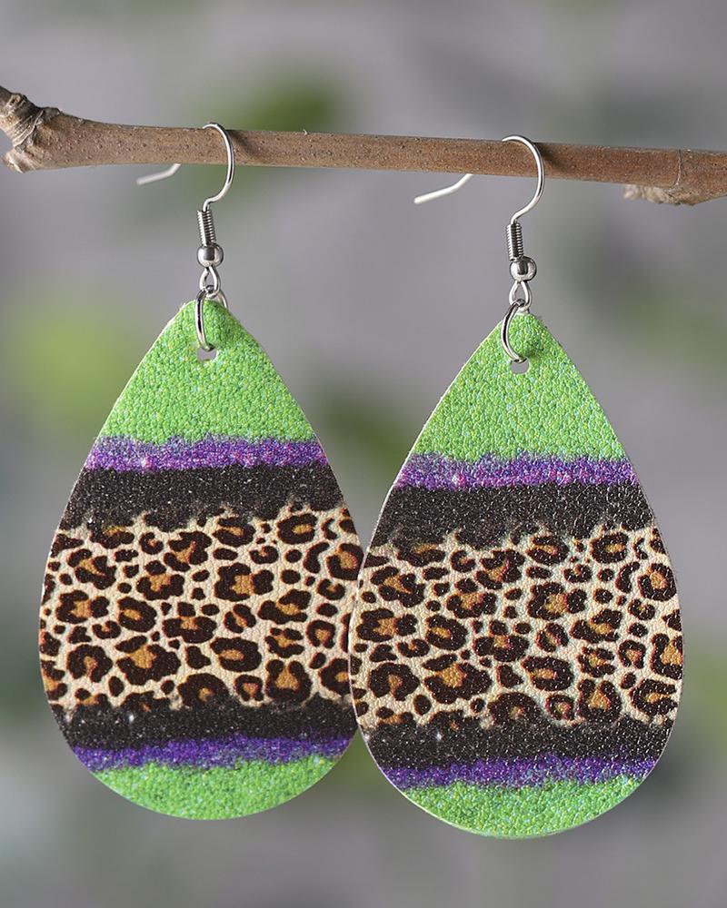 1Pair Contrast Leopard Waterdrop Earrings, Green
