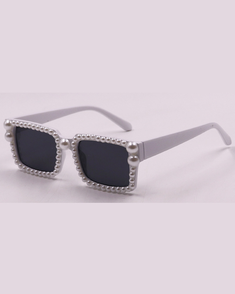 1Pair Fake Pearls Decor Rectangular Gradient Sunglasses, White
