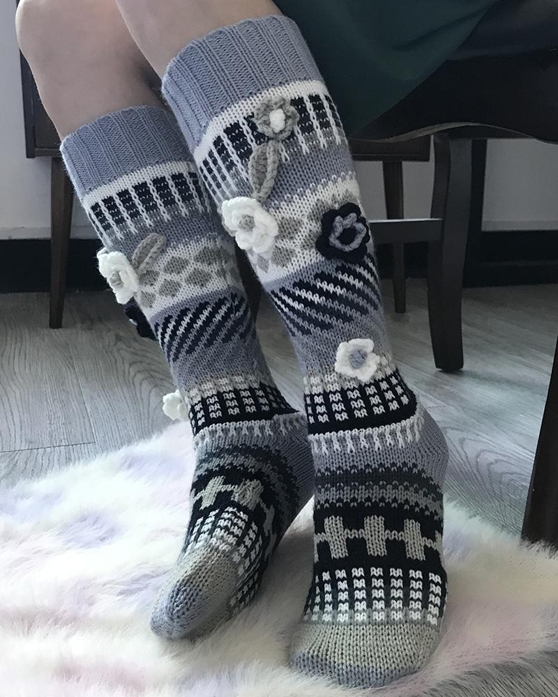 1Pair Floral Geometric Pattern Knit Floor Socks, Style2