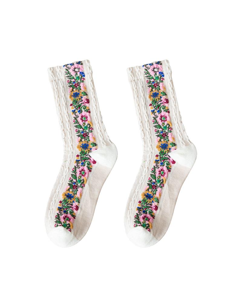 1Pair Floral Pattern Socks, Style1
