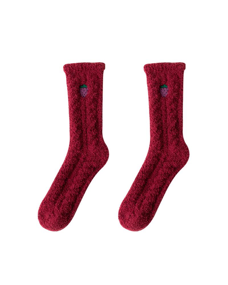 1Pair Fruit Pattern Fuzzy Socks, Red