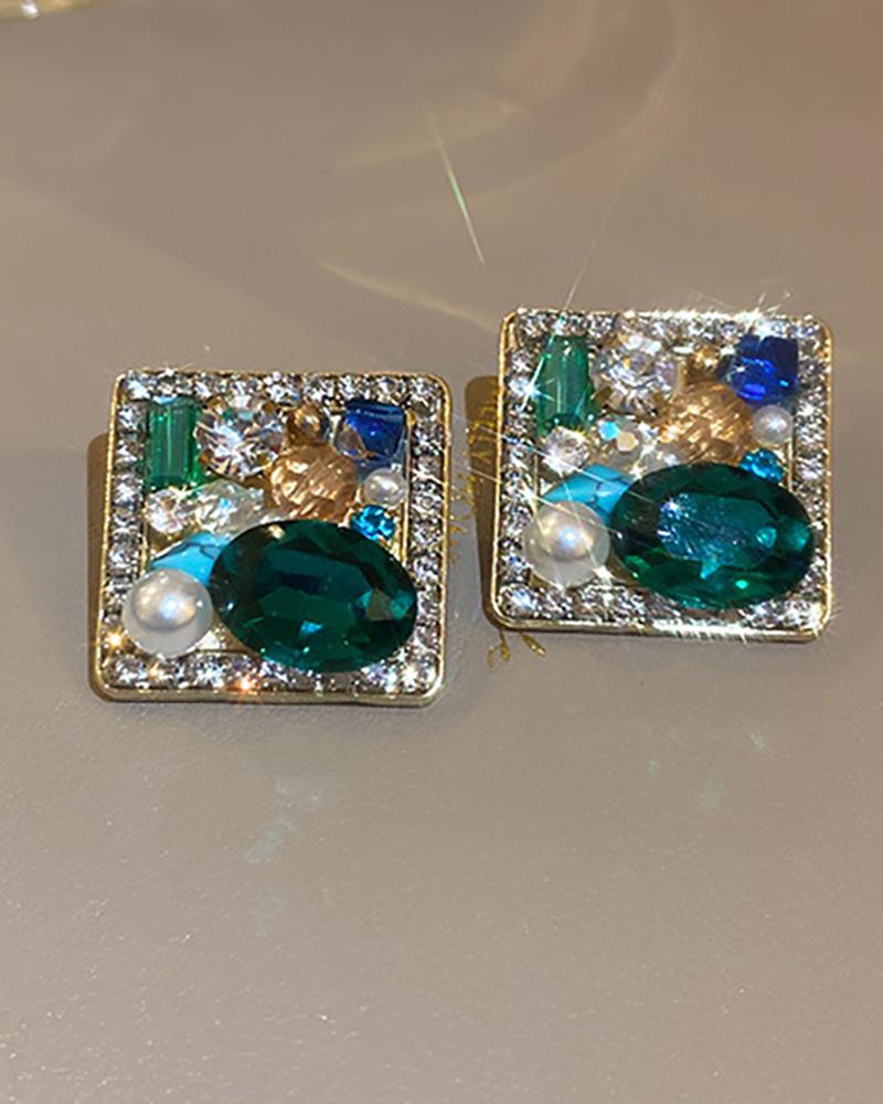 1Pair Gem Stone Rhinestone Retro Earrings, Style1