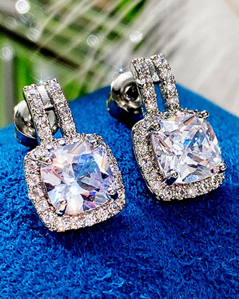 1Pair Geometric Rhinestone Zircon Hollow Out Earrings, Silver