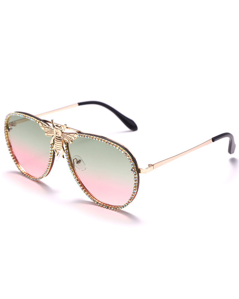 1Pair Gradient Rhinestone Bee Pattern Trendy Pilot Sunglasses, Style1
