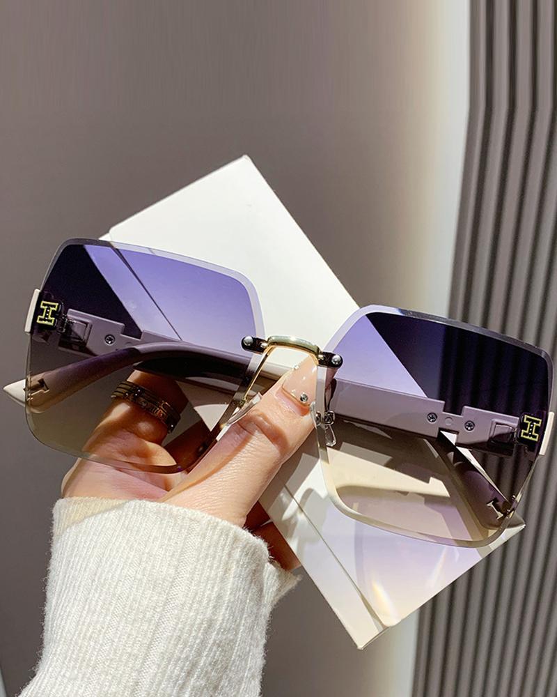 1Pair Gradient Tinted Rimless Square Sunglasses, Gray