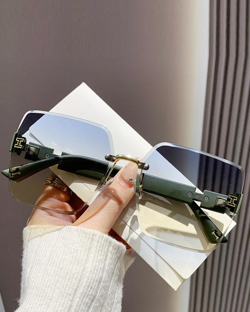 1Pair Gradient Tinted Rimless Square Sunglasses, Green