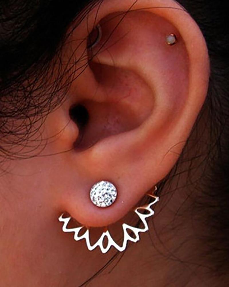 1Pair Half Floral Pattern Rhinestone Earrings, Silver