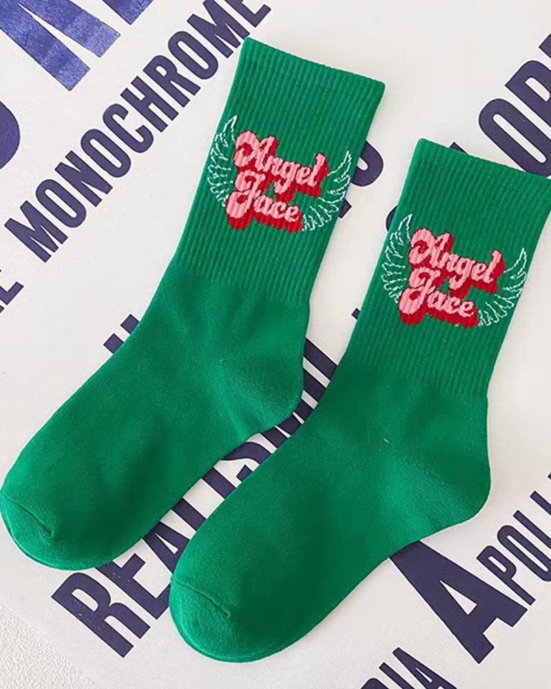 1Pair Heart Letter Cartoon Knit Crew Socks, Style2
