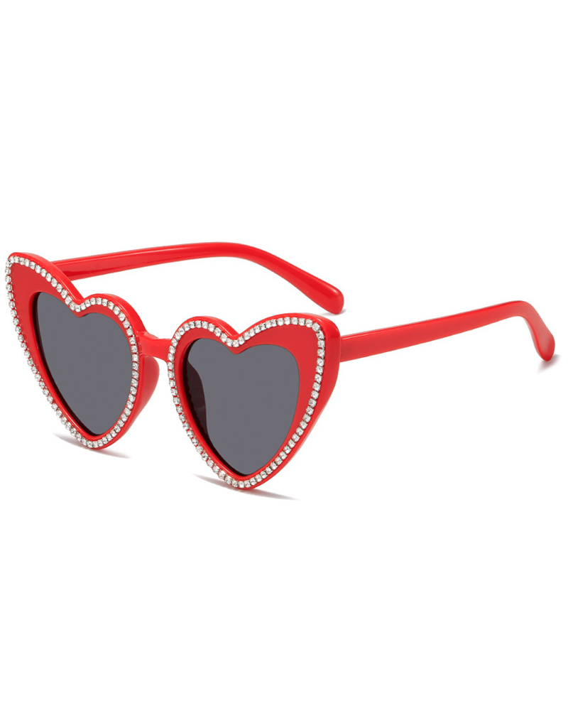 1Pair Heart Shaped Frame Rhinestone Decor Sunglasses, Red