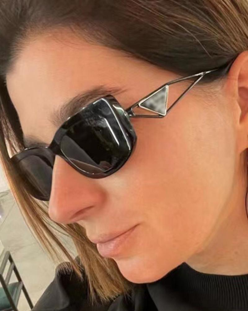 1Pair Hollow Out Triangle Pattern Square Frame Sunglasses, Black