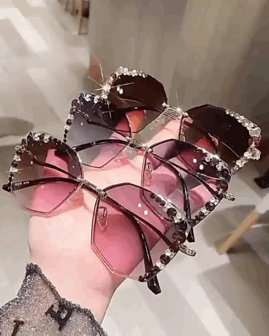 1Pair Irregular Frame Rhinestone Decor Sunglasses, Style1