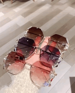 1Pair Irregular Rimless Frame Rhinestone Tinted Lens Sunglasses, Style1