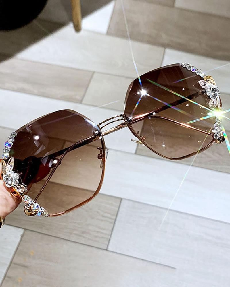 1Pair Irregular Rimless Frame Rhinestone Tinted Lens Sunglasses, Style2