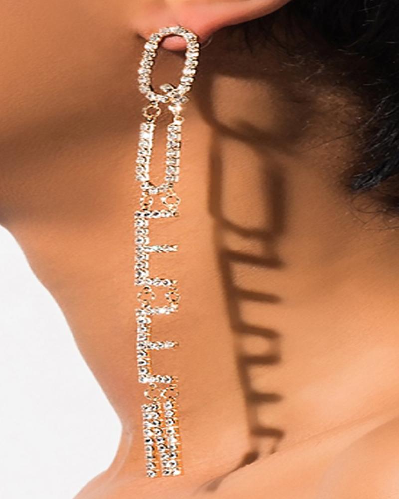 1Pair Letter Pattern Rhinestone Earrings, Silver