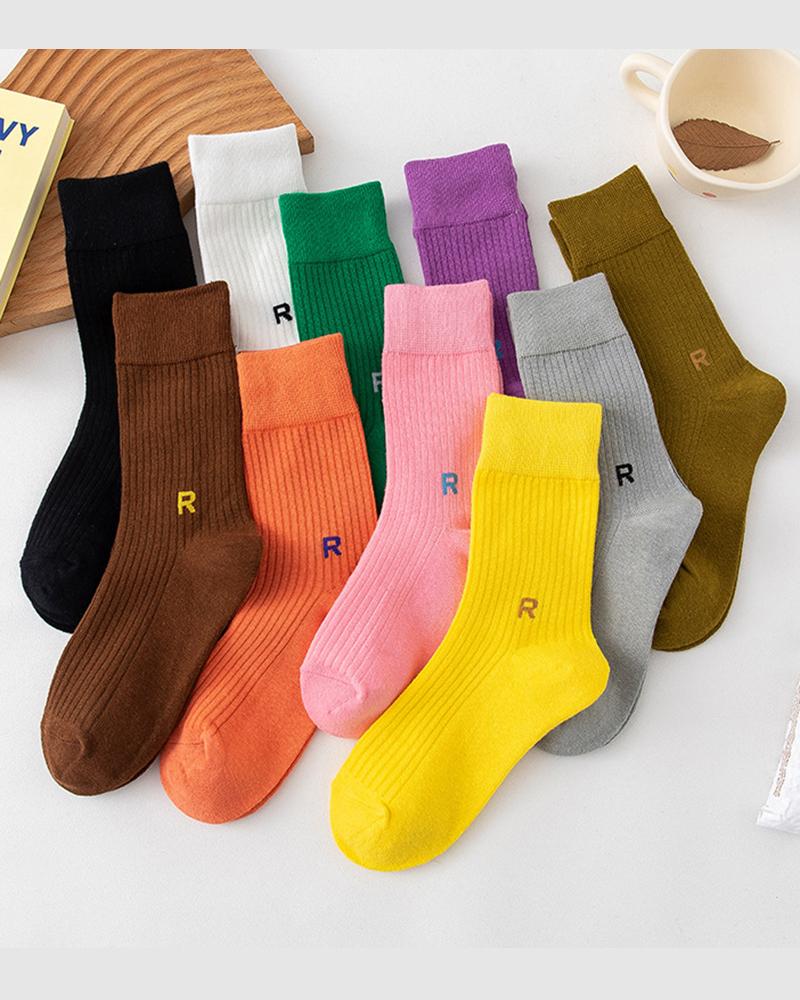 1Pair Letter Pattern Warm Socks, Yellow