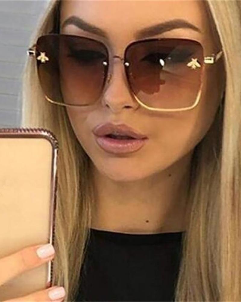 1Pair Metal Big Square Frame Tinted Lens Sunglasses, Brown