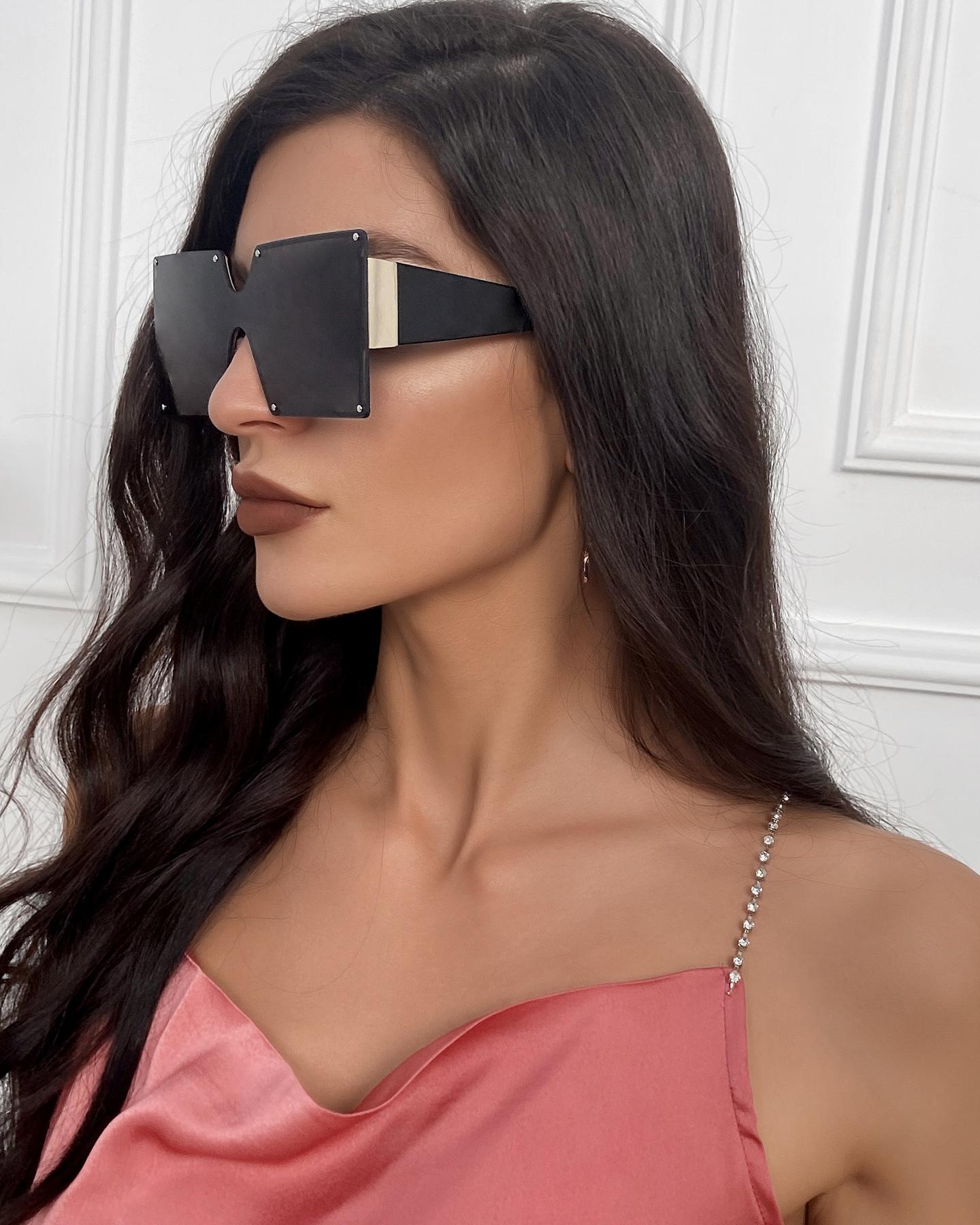 1Pair Metal Decor Square Frame Sunglasses, Style1
