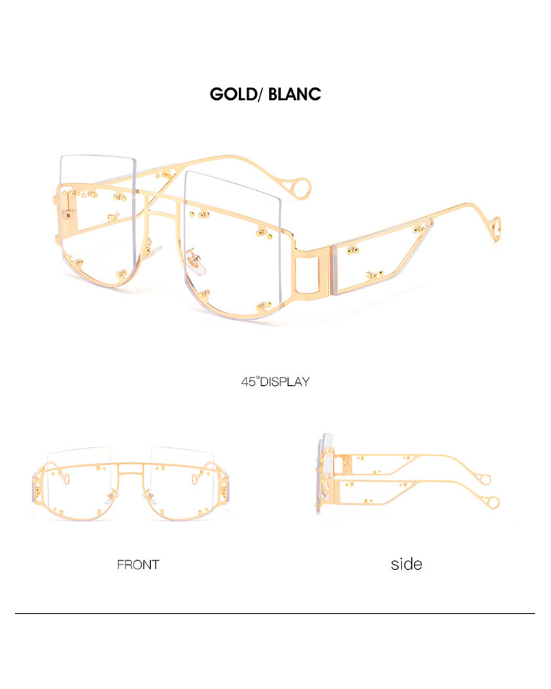 1Pair Metal Rimless Square Shaped Sunglasses, White