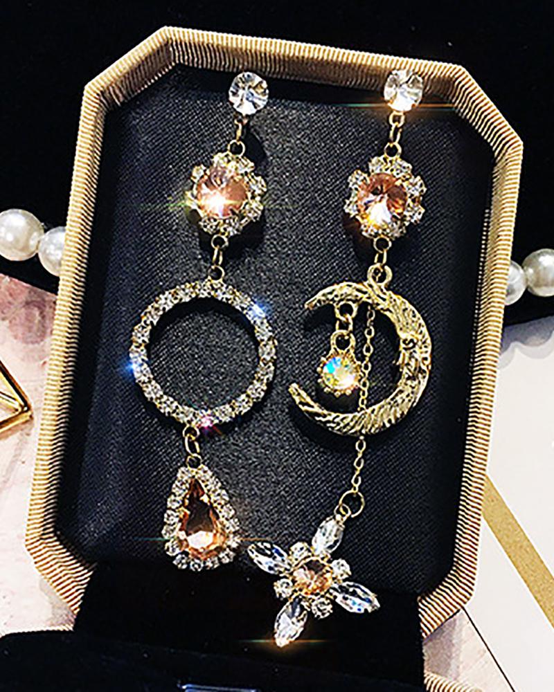 1Pair Moon & Circle Pattern Rhinestone Drop Earrings, Style1