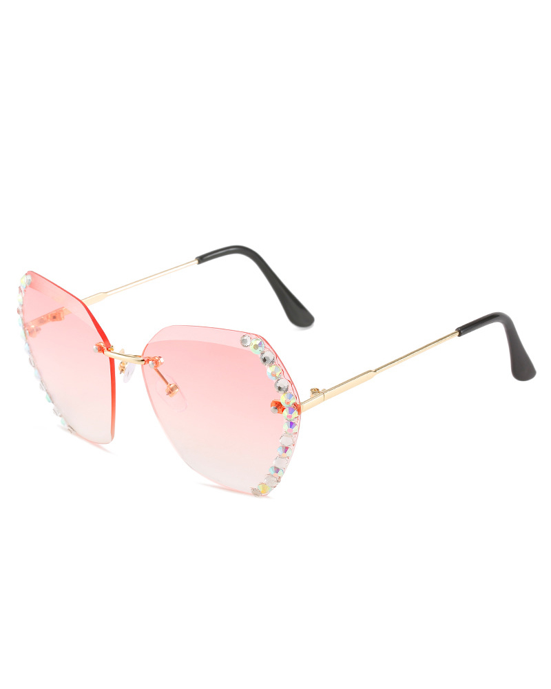 1Pair Ombre Lens Rhinestone Irregular Rimless Sunglasses, Light pink