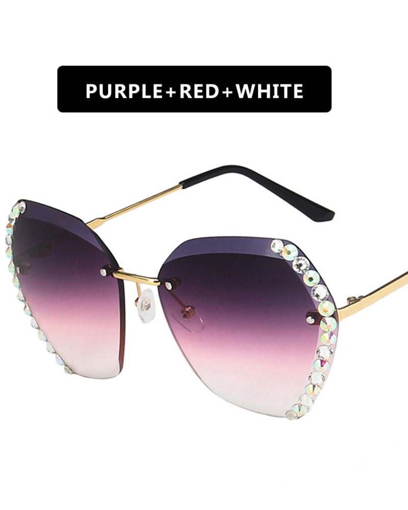 1Pair Ombre Rimless Rhinestone Geometric Metal Frame Sunglasses, Purple