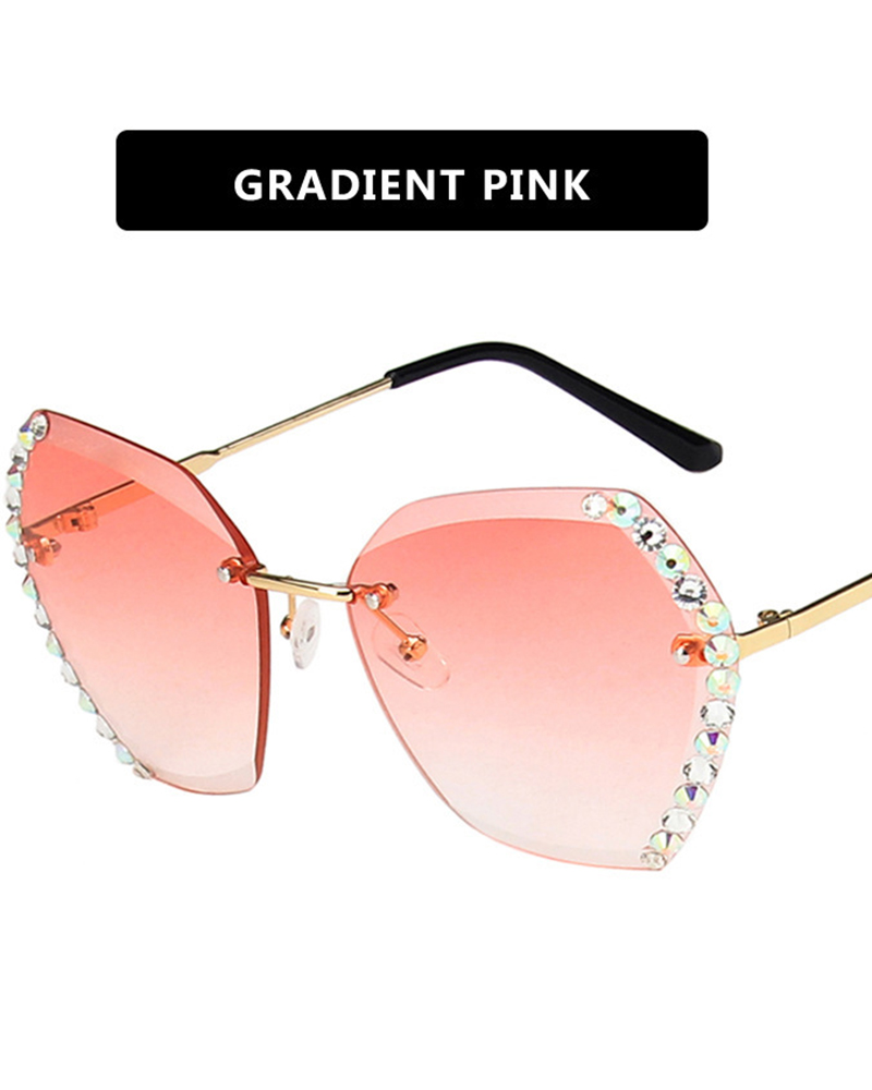 1Pair Ombre Rimless Rhinestone Geometric Metal Frame Sunglasses, Red
