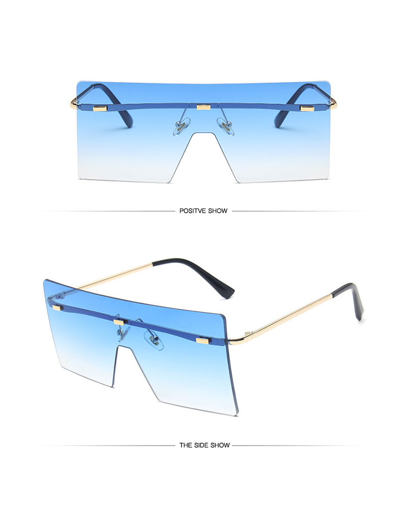 1Pair Oversized Frame Rimless Sunglasses, Blue