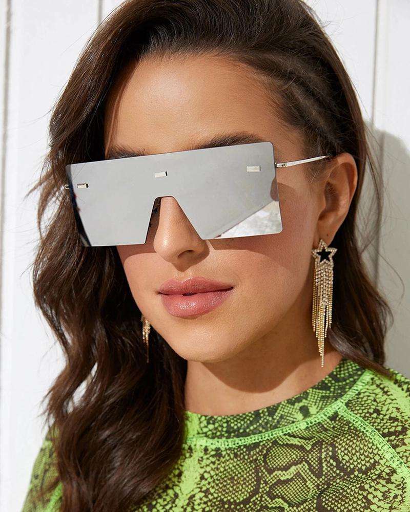 1Pair Oversized Frame Rimless Sunglasses, Silver