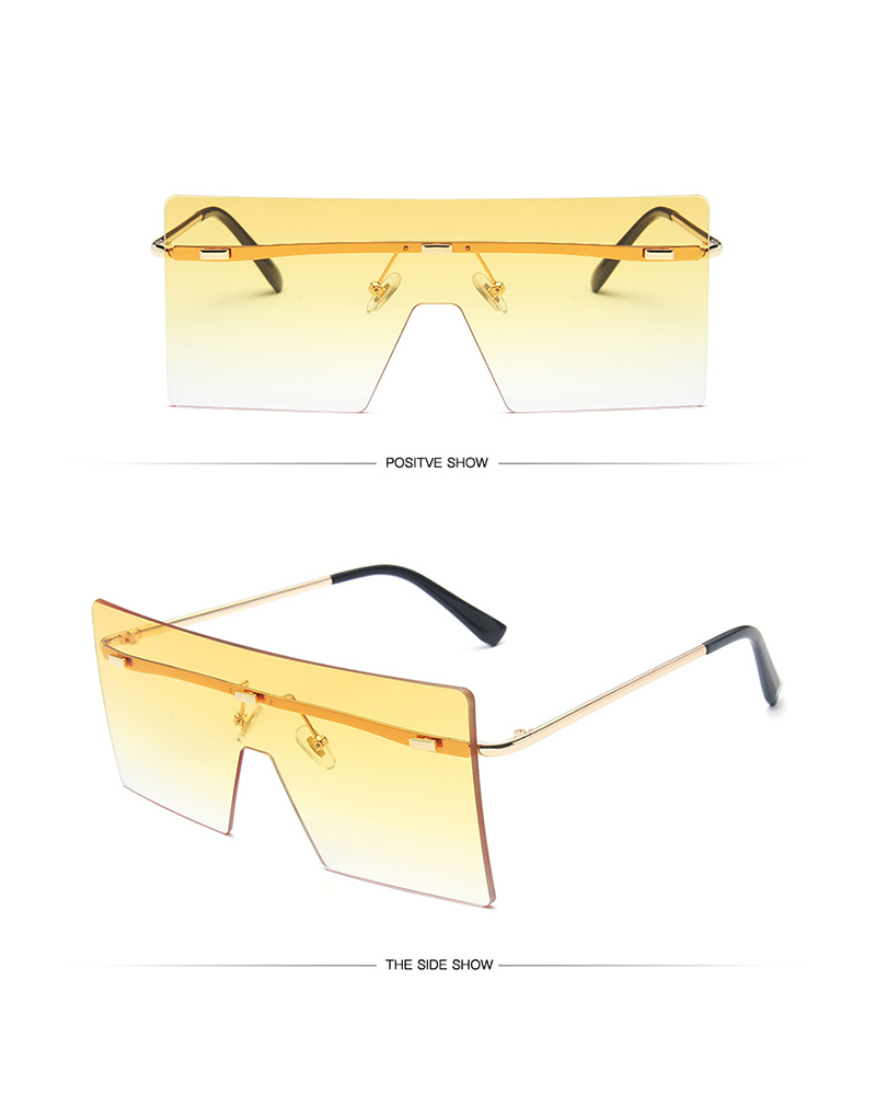 1Pair Oversized Frame Rimless Sunglasses, Yellow