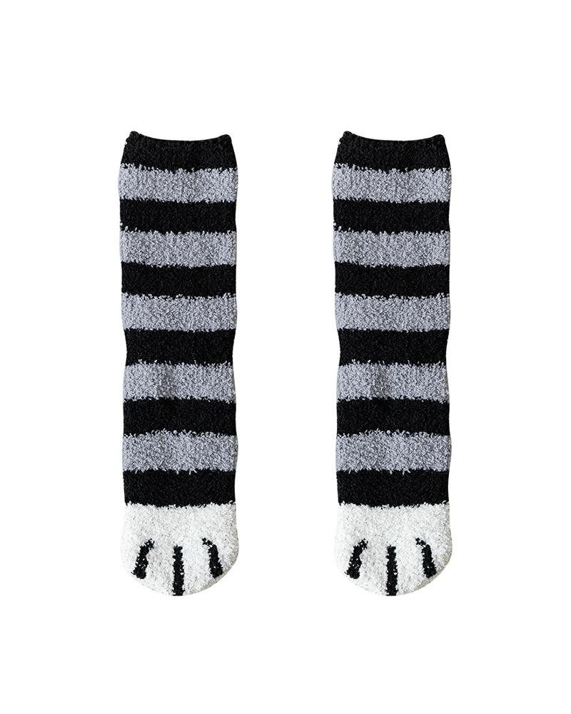 1Pair Paw Pattern Fluffy Socks, Style2